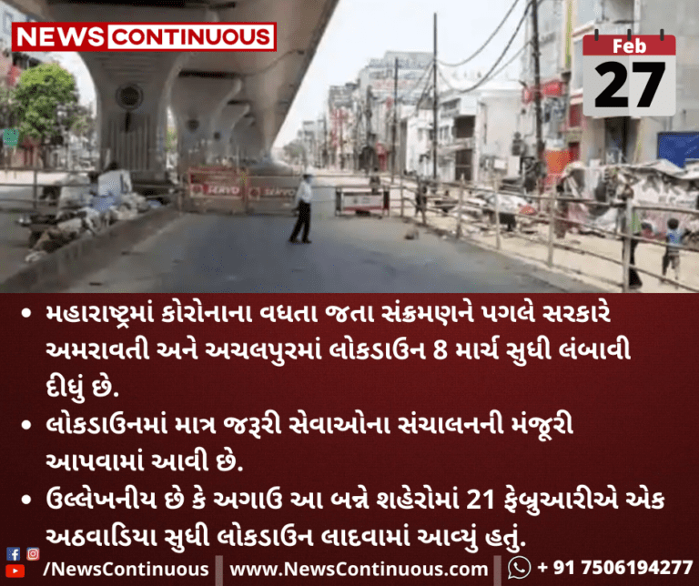 મહારાષ્ટ્રમાં કોરોનાના વધતા જતા સંક્રમણને પગલે સરકારે અમરાવતી અને અચલપુરમાં લોકડાઉન 8 માર્ચ સુધી લંબાવી દીધું છે.