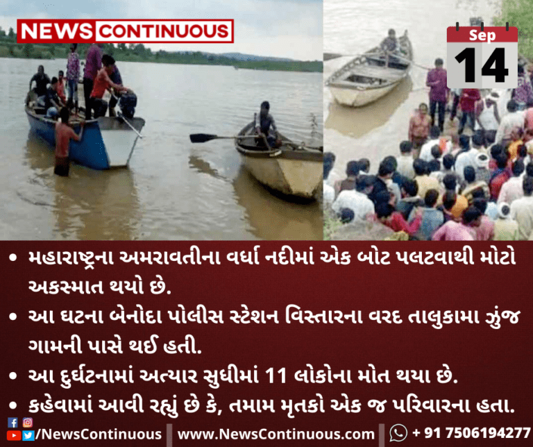 મહારાષ્ટ્રના અમરાવતીના વર્ધા નદીમાં એક બોટ પલટવાથી મોટો અકસ્માત થયો છે.