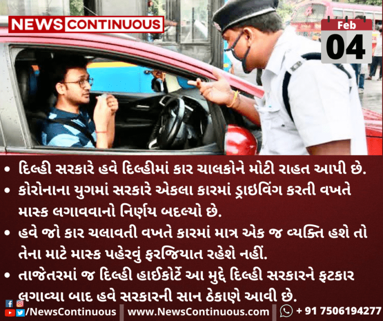 હવે જો કાર ચલાવતી વખતે કારમાં માત્ર એક જ વ્યક્તિ હશે તો તેના માટે માસ્ક પહેરવું ફરજિયાત રહેશે નહીં.
