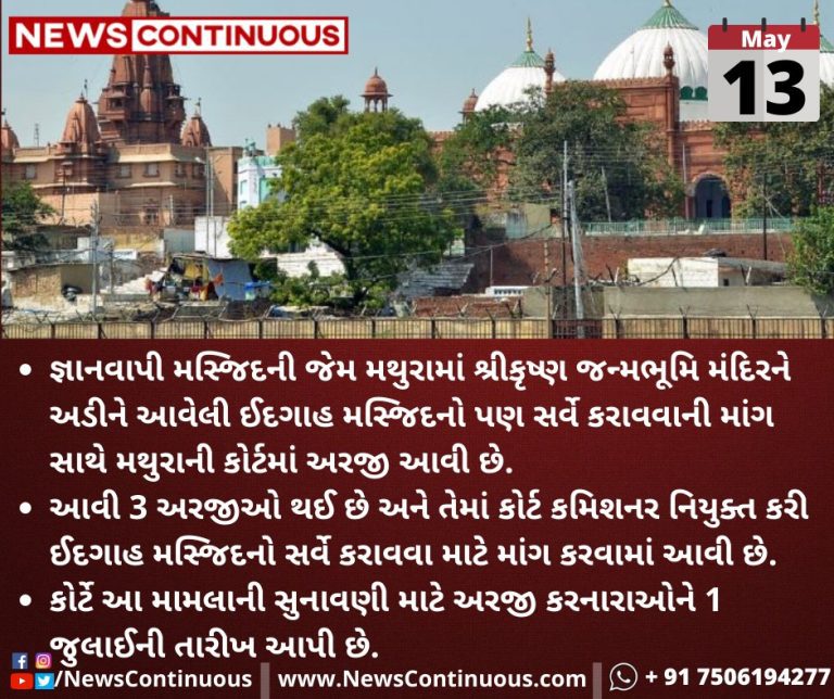 જ્ઞાનવાપી મસ્જિદની(Gyanvapi masjid) જેમ મથુરામાં(Mathura) શ્રીકૃષ્ણ જન્મભૂમિ(Shri krishna janmabhoomi) મંદિરને અડીને આવેલી ઈદગાહ મસ્જિદનો(Eidgah Mosque) પણ સર્વે(Survey) કરાવવાની માંગ સાથે મથુરાની કોર્ટમાં(mathura court) અરજી આવી છે.