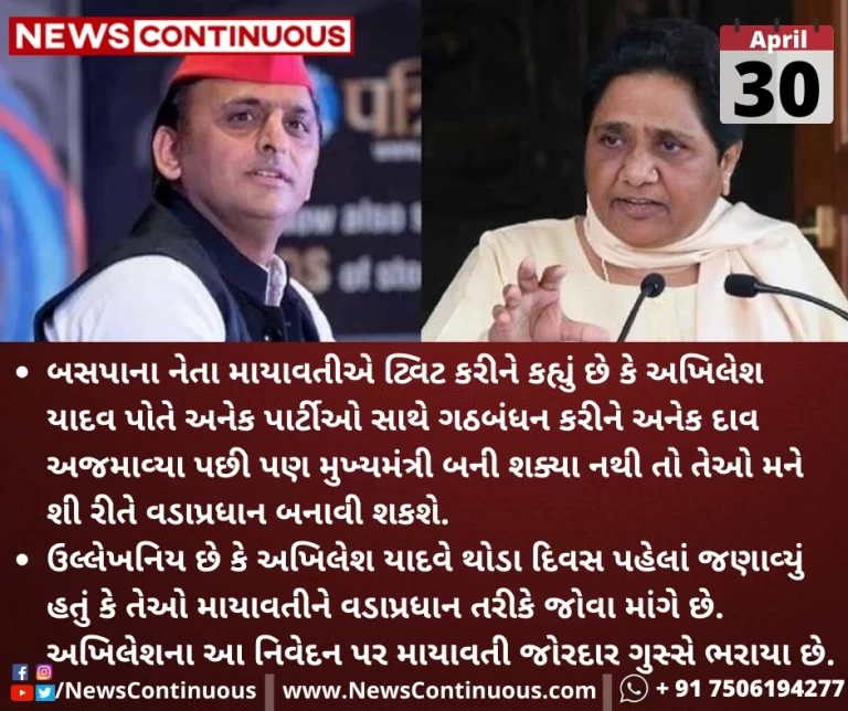 ઉલ્લેખનિય છે કે અખિલેશ યાદવે થોડા દિવસ પહેલાં જણાવ્યું હતું કે તેઓ માયાવતીને વડાપ્રધાન તરીકે જોવા માંગે છે. અખિલેશના આ નિવેદન પર માયાવતી જોરદાર ગુસ્સે ભરાયા છે.