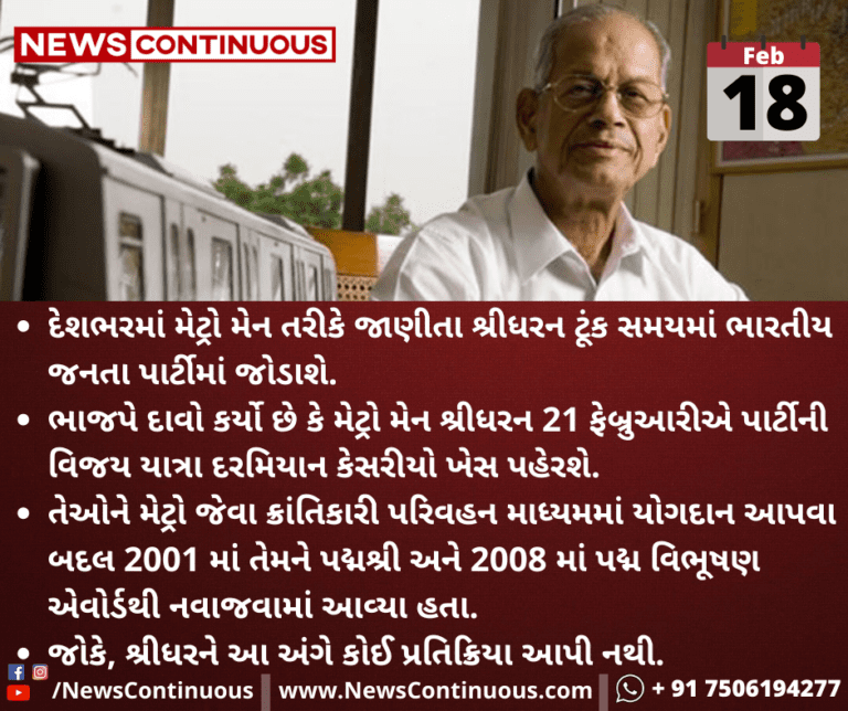 મેટ્રો મેન તરીકે જાણીતા શ્રીધરન ટૂંક સમયમાં ભારતીય જનતા પાર્ટીમાં જોડાશે.
