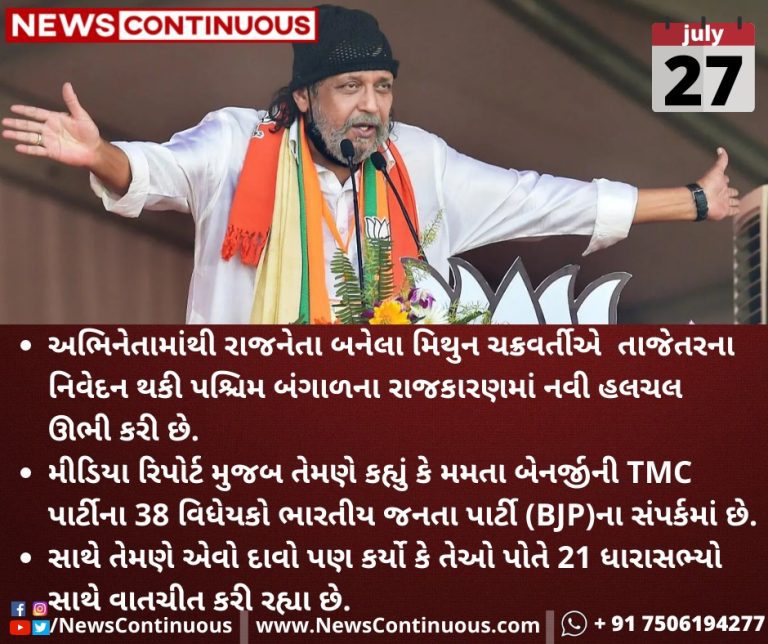 અભિનેતામાંથી(Actor) રાજનેતા(politician) બનેલા મિથુન ચક્રવર્તીએ(Mithun Chakraborty) તાજેતરના નિવેદન થકી પશ્ચિમ બંગાળના(West Bengal) રાજકારણમાં(Politics) નવી હલચલ ઊભી કરી છે.