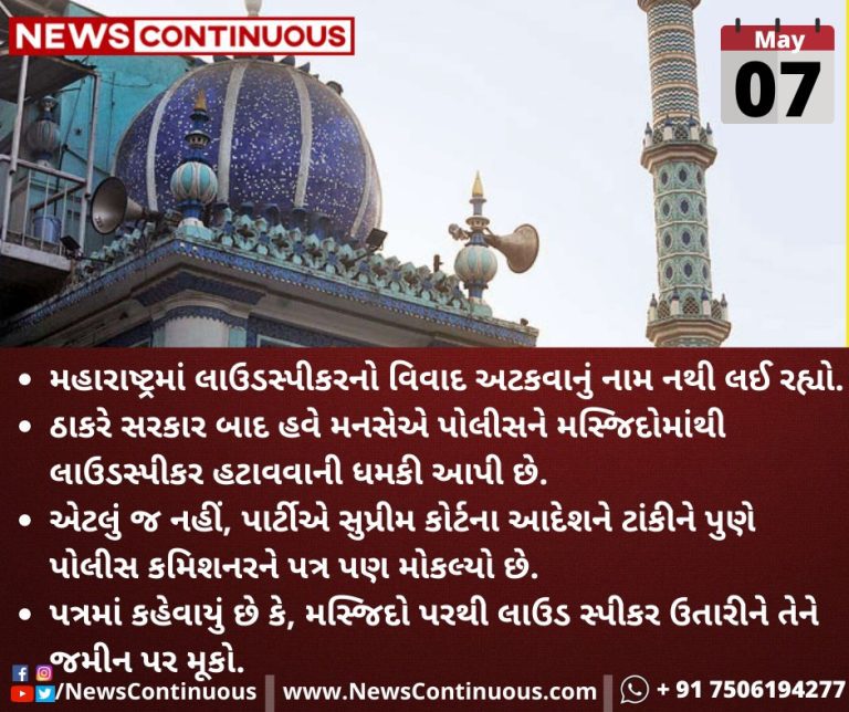 મહારાષ્ટ્રમાં(Maharashtra) લાઉડસ્પીકરનો વિવાદ(Loudspeaker row) અટકવાનું નામ નથી લઈ રહ્યો.