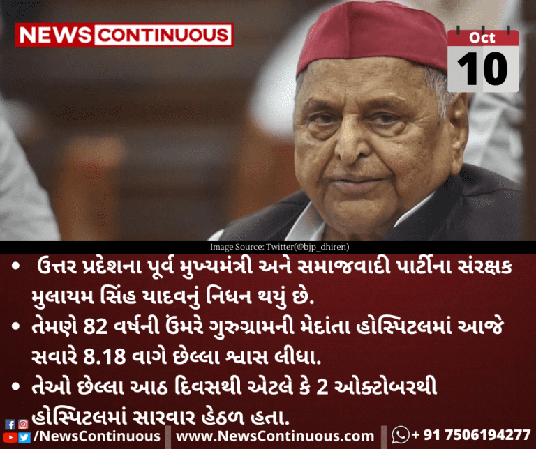 ઉત્તર પ્રદેશના પૂર્વ મુખ્યમંત્રી અને સમાજવાદી પાર્ટીના સંરક્ષક મુલાયમ સિંહ યાદવનું નિધન થયું છે.