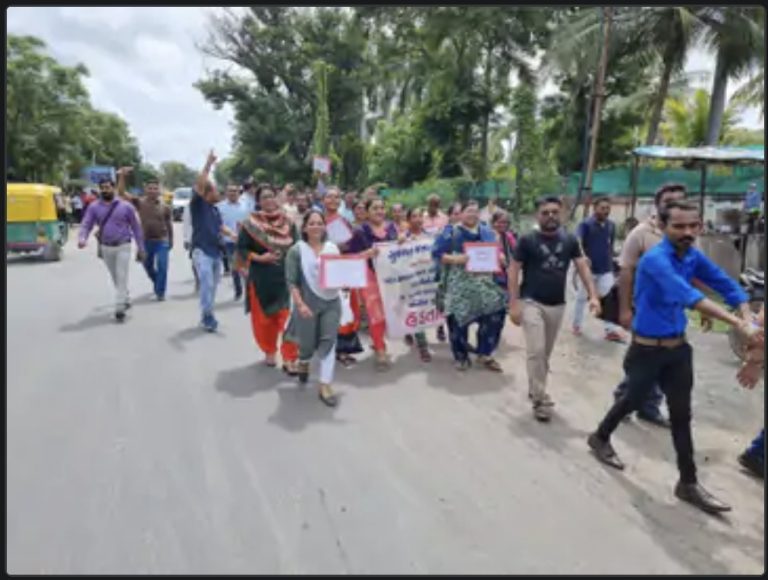 નડિયાદના(Nadiad) આઉટસોર્સ કર્મચારીઓ(Outsourced employees) રેલી(Rally) યોજી સૂત્રોચ્ચાર કરી હડતાળ પર ઉતર્યા નડિયાદ સર્કિટ હાઉસથી(Nadiad Circuit House) કલેક્ટર કચેરી સુધી રેલી યોજી સરકાર વિરુદ્ધ સૂત્રોચ્ચાર કરી હડતાલ ઉપર ઉતર્યા છે. પડતર માંગણીઓ સંદર્ભે આઉટસોર્સિંગના કર્મીઓએ(Outsourcing personnel) સરકાર સામે બાયો ચઢાવી છે. પોસ્ટીંગ આપી સરકારી કોન્ટ્રાકટ(Government Contracts) મેળવી લે છે ગુજરાત રાજયમાં સરકારે(Gujarat State Govt) આઉટસોર્સિંગના માધ્યમથી કોન્ટ્રાકટ બેઝથી એન્સીઓ, કંપની પાસેથી મેનપાવર મેળવીને જુદા જુદા વિભાગોમાં કામ કરાવવામાં આવે છે. આવી એજન્સીઓ જે તે કચેરીમાં જઈને અમારા જેવા કર્મચારીના નામ મેળવીને તેઓને પોસ્ટીંગ આપી સરકારી કોન્ટ્રાક્ટ મેળવી લે છે. આ પધ્ધતિથી સરકાર અને અમો કર્મચારી એક જ માધ્યમ હોવા છતાં તેમાં કોઈ ત્રાહિત એજન્સી વચ્ચે આવીને મોટા બિઝનેસ મેળવી નાણાકીય લાભ મેળવી રહેલ છે. આ કારણોથી સરકાર અને કર્મચારીઓને નુકશાન થાય છે. જયારે કઈજ લેવા દેવા સિવાય આવી ત્રાહિત એજન્સી વચ્ચે આવીને કરોડો રૂપિયાની કમાણી કરી જાય છે. હડતાલની જાહેરાત કરવામાં આવી સરકારએ નકકી કરેલ લઘુતમ વેતન મુજબ કોઈ પણ કર્મચારીને આવી કોન્ટ્રાક્ટ પદ્ધતિમાં પગાર આપવામાં આવતો નથી. દા.ત લઘુતમ વેતન 9 હજાર હોય તો એજન્સી અમારા જેવા કર્મચારીને 4-5 હજાર જેટલી રકમ ઉચ્ચક આપી દે છે બાકીની રકમ સરકાર પાસેથી મેળવીને તેઓના ખિસ્સામાં જાય છે. પ્રોવિડન્ટ ફંડ/ વીમો(Provident Fund/ Insurance) અન્ય સરકારી લાભો અમારા જેવા કર્મચારીઓને મળતા નથી. અમારા જેવા કર્મચારીની અડધી જીંદગી (લગભગ છેલ્લા 20 વર્ષ) આ રીતે પસાર થઈ ગયા છે. હવે અમોને કોઈપણ જગ્યાએ ઉંમરના કારણે સરકારી કે ખાનગી નોકરી(Govt or private job) મળી શકે તેમ નથી. હાલની મોંઘવારી અને કામની પરિસ્થિતિ જોતાં અમો તથા અમારા પરિવાર ખુબ જ મોટી આર્થિક મુશ્કેલી ભોગવી રહ્યા છે. આરોગ્ય તેમજ બાળકોના શિક્ષણનો ખર્ચ આવી મોંઘવારીના કારણે કરી શકતા નથી. એટલે પ્રથમ તો ગુજરાત રાજયની આવી તમામ એજન્સીઓને ગેરકાયદેસર ગણીને તમામ કોન્ટ્રાકટ રદ કરવામાં આવે અને સરકાર ડાયરેક્ટ અમને નિમણુંક આપીને યોગ્ય પગાર ધોરણ નકકી કરે તેવી વિનંતી છે. જેથી અમારો હક અને અધિકારો માટે લડત ચલાવવા ગુજરાત જન જાગૃતિ મંચ દ્વારા ગુજરાત સરકારની શોષણ ભરી નિતિઓના વિરોધમાં 17 સપ્ટેમ્બરથી અચોક્કસ મદતની હડતાલની જાહેરાત કરવામાં આવી છે. જેને અમે સમર્થન આપીએ છીએ.