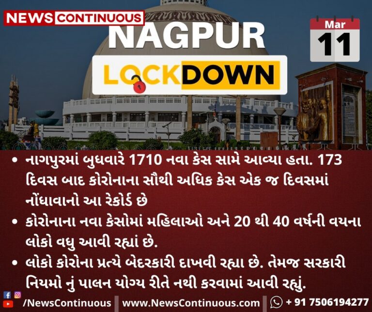 નાગપુરમાં બુધવારે 1710 નવા કેસ સામે આવ્યા હતા. 173 દિવસ બાદ કોરોનાના સૌથી અધિક કેસ એક જ દિવસમાં નોંધાવાનો આ રેકોર્ડ છે