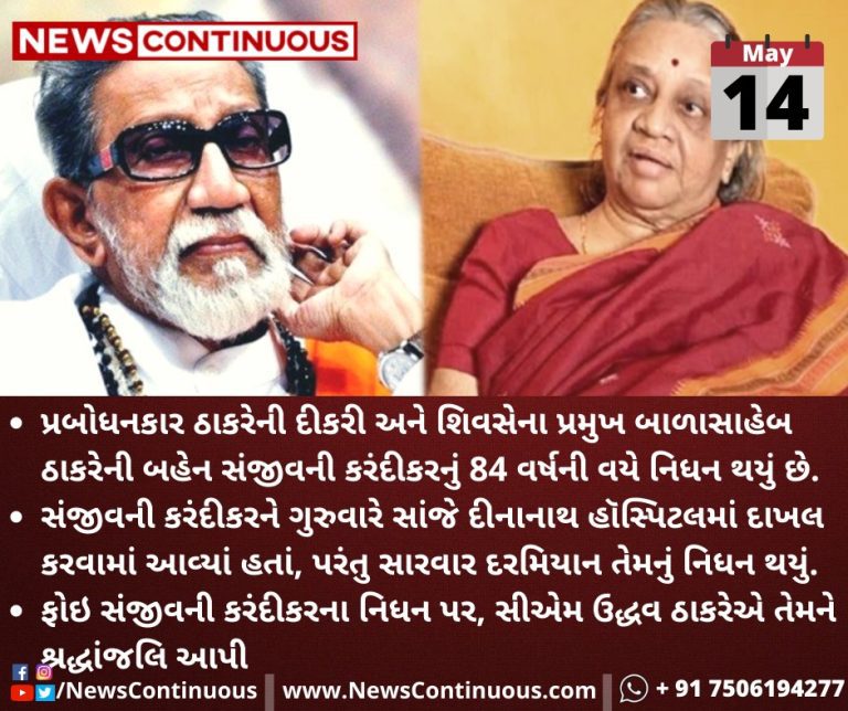 પ્રબોધનકાર ઠાકરેની દીકરી અને શિવસેના પ્રમુખ બાળાસાહેબ ઠાકરેની બહેન સંજીવની કરંદીકરનું ૮૪ વર્ષની ઉંમરે નિધન થયું છે.