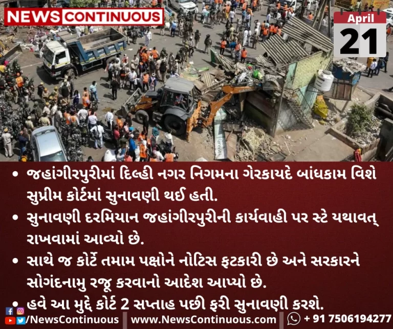 એટલે કે આગામી સુનાવણી સુધી જહાંગીરપુરીમાં દબાણ હટાવવાની કામગીરી પર રોક લગાવાયો છે