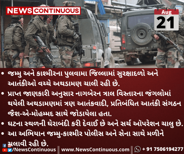 જમ્મુ અને કાશ્મીરના પુલવામા જિલ્લામાં સુરક્ષાદળો અને આતંકીઓ વચ્ચે અથડામણ ચાલી રહી છે.