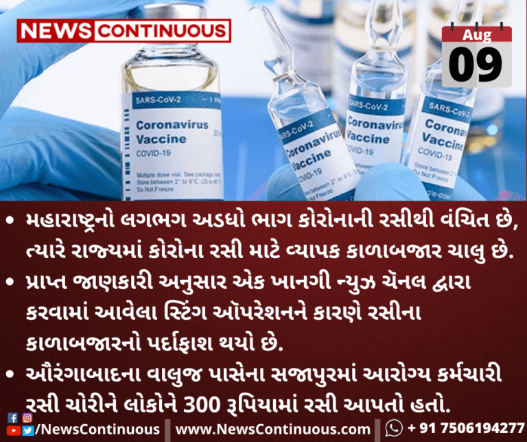 મહારાષ્ટ્રનો લગભગ અડધો ભાગ કોરોનાની રસીથી વંચિત છે, ત્યારે રાજ્યમાં કોરોના રસી માટે વ્યાપક કાળાબજાર ચાલુ છે.