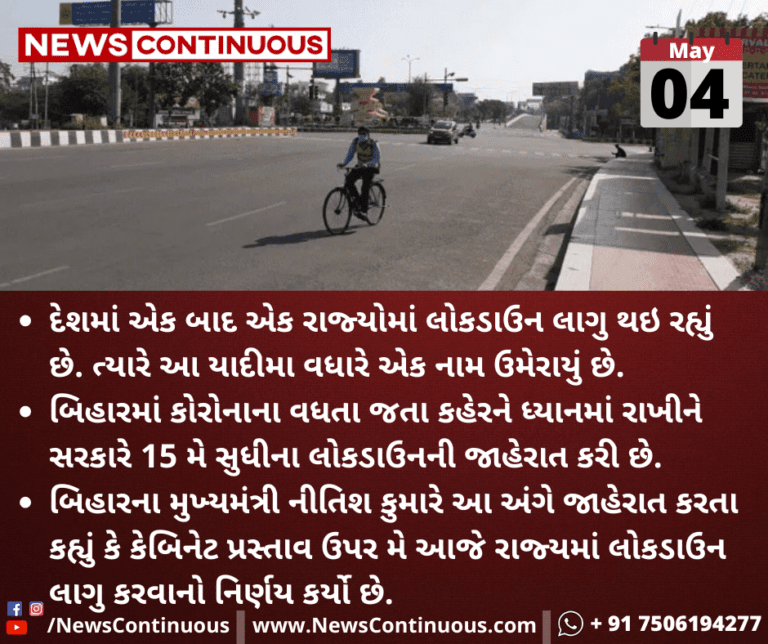 બિહારમાં કોરોનાના વધતા જતા કહેરને ધ્યાનમાં રાખીને સરકારે 15 મે સુધીના લોકડાઉનની જાહેરાત કરી છે.