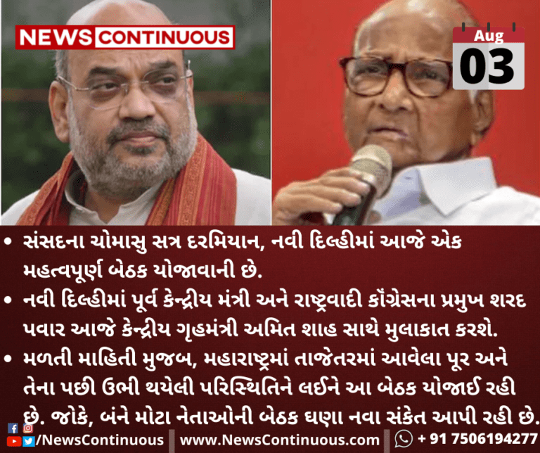 ઉલ્લેખનીય છે કે શરદ પવારે ગત મહિને જ દિલ્હીમાં પ્રધાનમંત્રી નરેન્દ્ર મોદી સાથે મુલાકાત કરી હતી.