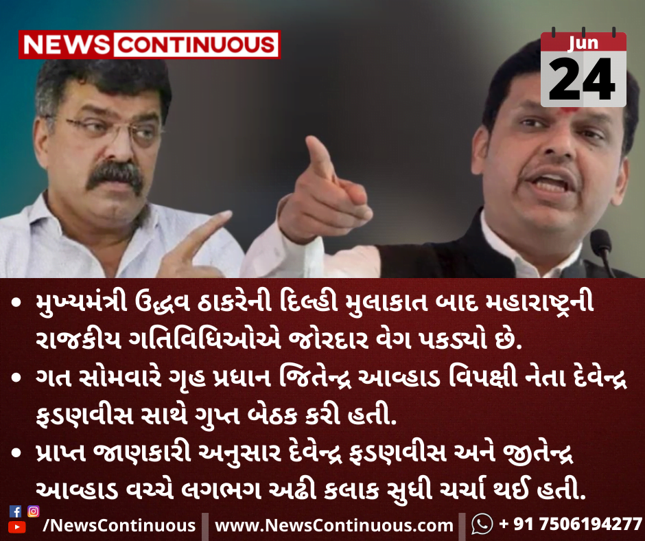 ગત સોમવારે ગૃહ પ્રધાન જિતેન્દ્ર આવ્હાડ વિપક્ષી નેતા દેવેન્દ્ર ફડણવીસ સાથે ગુપ્ત બેઠક કરી હતી.