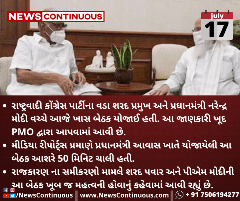 રાજકારણ ના સમીકરણો મામલે શરદ પવાર અને પીએમ મોદીની આ બેઠક ખૂબ જ મહત્વની હોવાનું કહેવામાં આવી રહ્યું છે.