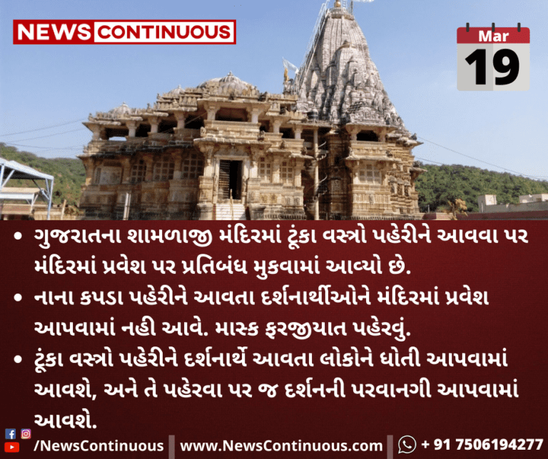 ગુજરાતના શામળાજી મંદિરમાં ટૂંકા વસ્ત્રો પહેરીને આવવા પર મંદિરમાં પ્રવેશ પર પ્રતિબંધ મુકવામાં આવ્યો છે.