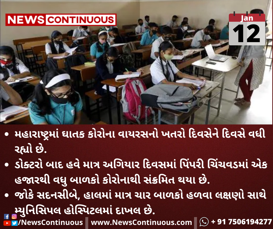 ડોક્ટરો બાદ હવે માત્ર અગિયાર દિવસમાં પિંપરી ચિંચવડમાં એક હજારથી વધુ બાળકો કોરોનાથી સંક્રમિત થયા છે.