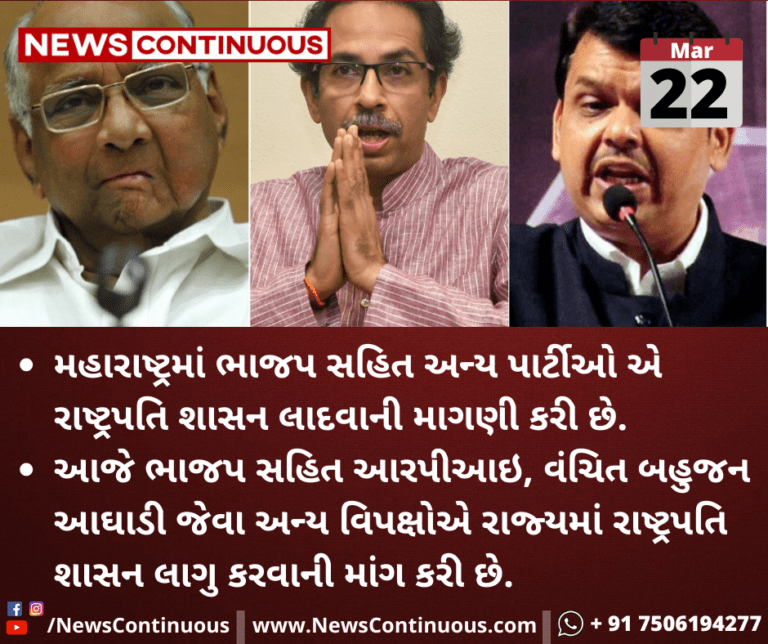 મહારાષ્ટ્રમાં ભાજપ સહિત અન્ય પાર્ટીઓ એ રાષ્ટ્રપતિ શાસન લાદવાની માગણી કરી છે.