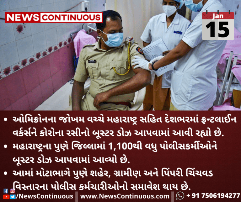 મહારાષ્ટ્રના પુણે જિલ્લામાં 1,100થી વધુ પોલીસકર્મીઓને બૂસ્ટર ડોઝ આપવામાં આવ્યો છે.