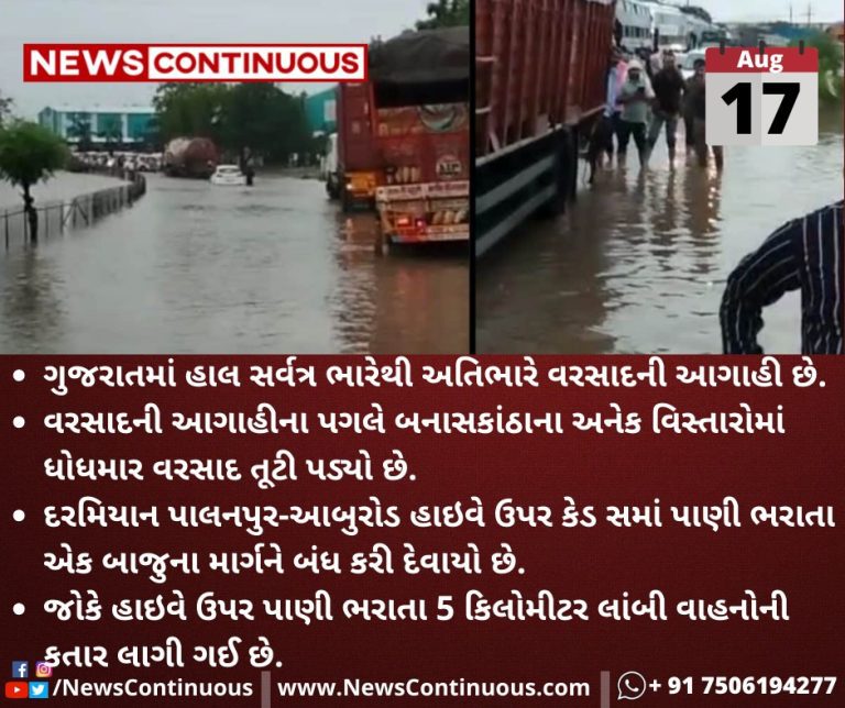 દરમિયાન પાલનપુર-આબુરોડ હાઇવે(Palanpur-Aburod Highway) ઉપર કેડ સમાં પાણી ભરાતા એક બાજુના માર્ગને બંધ કરી દેવાયો છે.