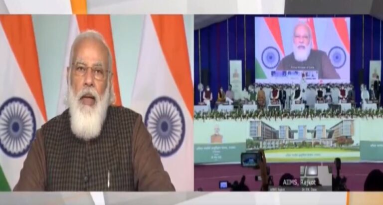 આજે પીએમ મોદીએ રાજકોટના ખંઢેરી નજીક નિર્માણ થનારી એઈમ્સનું વર્ચ્યુઅલ ખાતમુહૂર્ત કર્યુ હતું. પ્રધાનમંત્રી મોદીએ ખાતમુહૂર્ત બાદ પ્રાસંગિક પ્રવચન કર્યુ હતું.