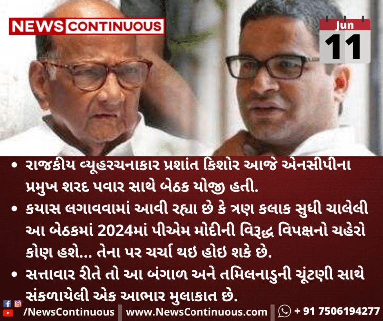ઉલ્લેખનીય છે કે ડીએમકે અને ટીએમસીએ તાજેતરમાં પૂર્ણ થયેલી વિધાનસભા ચૂંટણીમાં તમિલનાડુ અને પશ્ચિમ બંગાળમાં વિજય મેળવ્યા પછી પીકેની પવાર સાથેની આ પહેલી મુલાકાત છે.