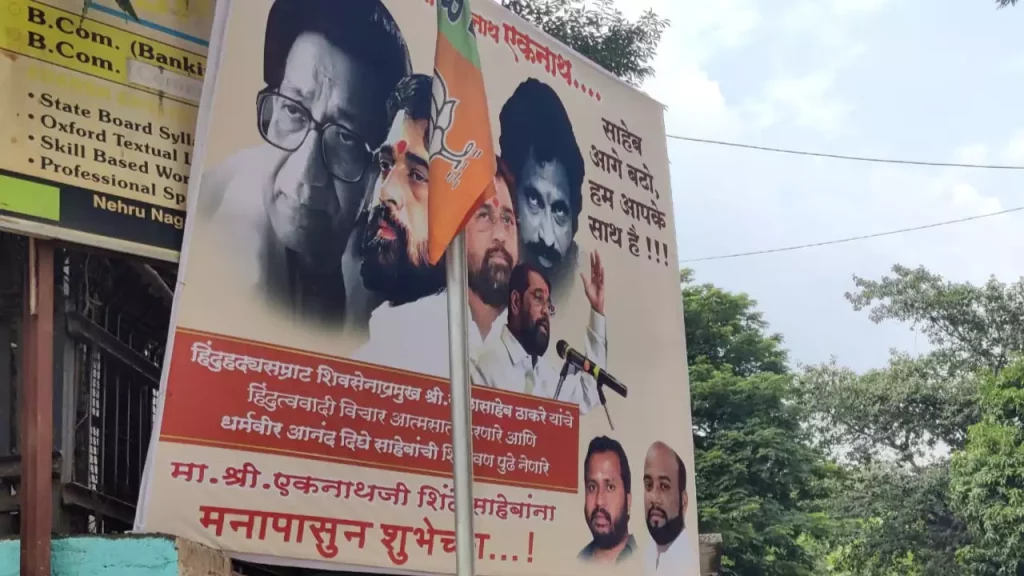 એકનાથ શિંદે (Eknath Shinde)ના સમર્થનમાં હવે મુંબઈ(mumbai) સહિત આખા રાજ્યમાં બધી જગ્યાએ પોસ્ટરો(Posters) દેખાઈ રહ્યા છે. આ પોસ્ટર પરથી ઉદ્ધવ ઠાકરે(Uddhav Thackeray)નો ફોટોગ્રાફ ગાયબ છે. તેમજ બાળાસાહેબ ઠાકરે, આનંદ દિધે અને એકનાથ શિંદે મોજુદ છે. આ ઉપરાંત પોસ્ટર પર શિવસેના(shivsena) નું નામ પણ લખવામાં આવ્યું છે. આનાથી એક વાત સ્પષ્ટ થાય છે કે એકનાથ શિંદે ની નજર પાર્ટી પર છે. તેમજ ઉદ્ધવ ઠાકરેએ પાર્ટી માંથી બાકાત છે.