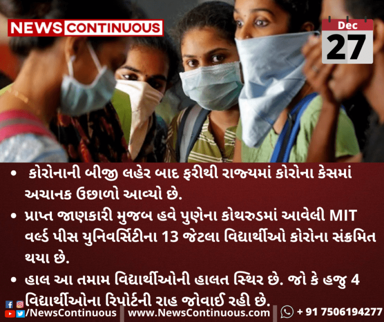 પ્રાપ્ત જાણકારી મુજબ હવે પુણેના કોથરુડમાં આવેલી MIT વર્લ્ડ પીસ યુનિવર્સિટીના 13 જેટલા વિદ્યાર્થીઓ કોરોના સંક્રમિત થયા છે.
