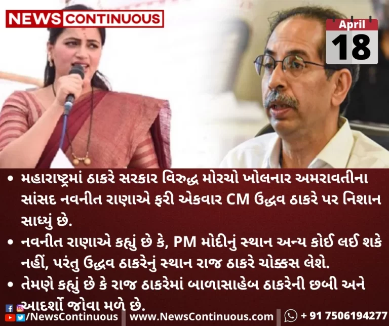 મહારાષ્ટ્રમાં ઠાકરે સરકાર વિરુદ્ધ મોરચો ખોલનાર અમરાવતીના સાંસદ નવનીત રાણાએ ફરી એકવાર મુખ્યમંત્રી ઉદ્ધવ ઠાકરે પર નિશાન સાધ્યું છે.