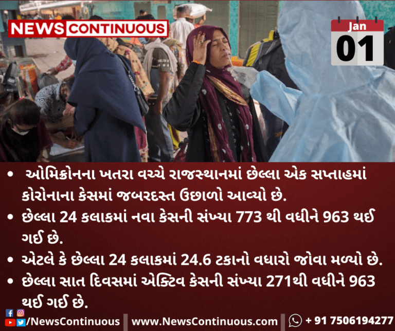 ઓમિક્રોનના ખતરા વચ્ચે રાજસ્થાનમાં છેલ્લા એક સપ્તાહમાં કોરોનાના કેસમાં જબરદસ્ત ઉછાળો આવ્યો છે.