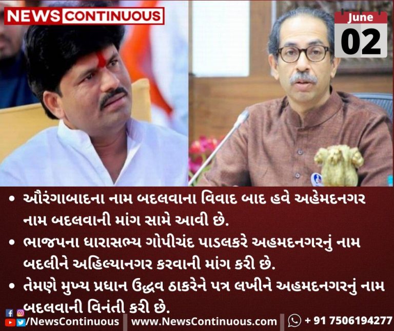 ભાજપના ધારાસભ્ય(BJP MLA) ગોપીચંદ પાડલકરે(Gopichand Padalkar) અહમદનગરનું નામ બદલીને અહિલ્યાનગર(Ahilyanagar) કરવાની માંગ કરી છે.