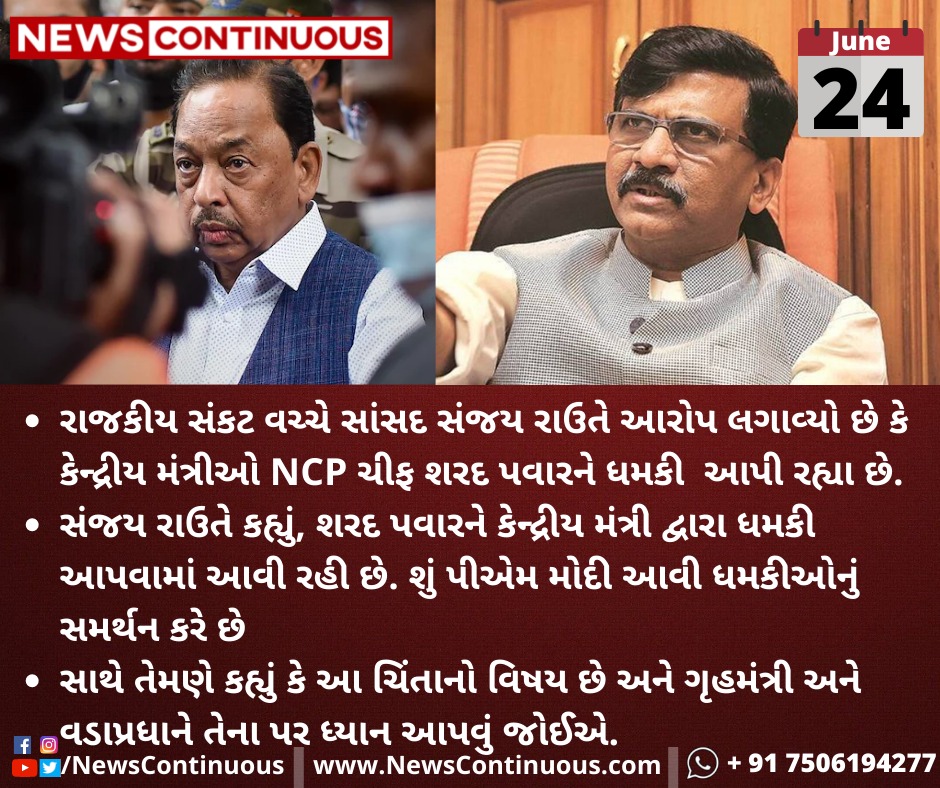 રાજકીય સંકટ(Political crisis) વચ્ચે સાંસદ સંજય રાઉતે(MP Sanjay Raut) આરોપ લગાવ્યો છે કે કેન્દ્રીય મંત્રીઓ(Union Ministers) NCP ચીફ શરદ પવારને(Sharad Pawar) ધમકી આપી રહ્યા છે.