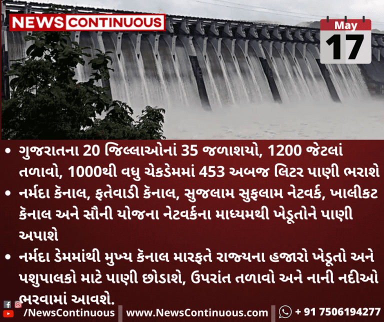 ગુજરાતના 20 જિલ્લાઓનાં 35 જળાશયો, 1200 જેટલાં તળાવો, 1000થી વધુ ચેકડેમમાં 453 અબજ લિટર પાણી ભરાશે