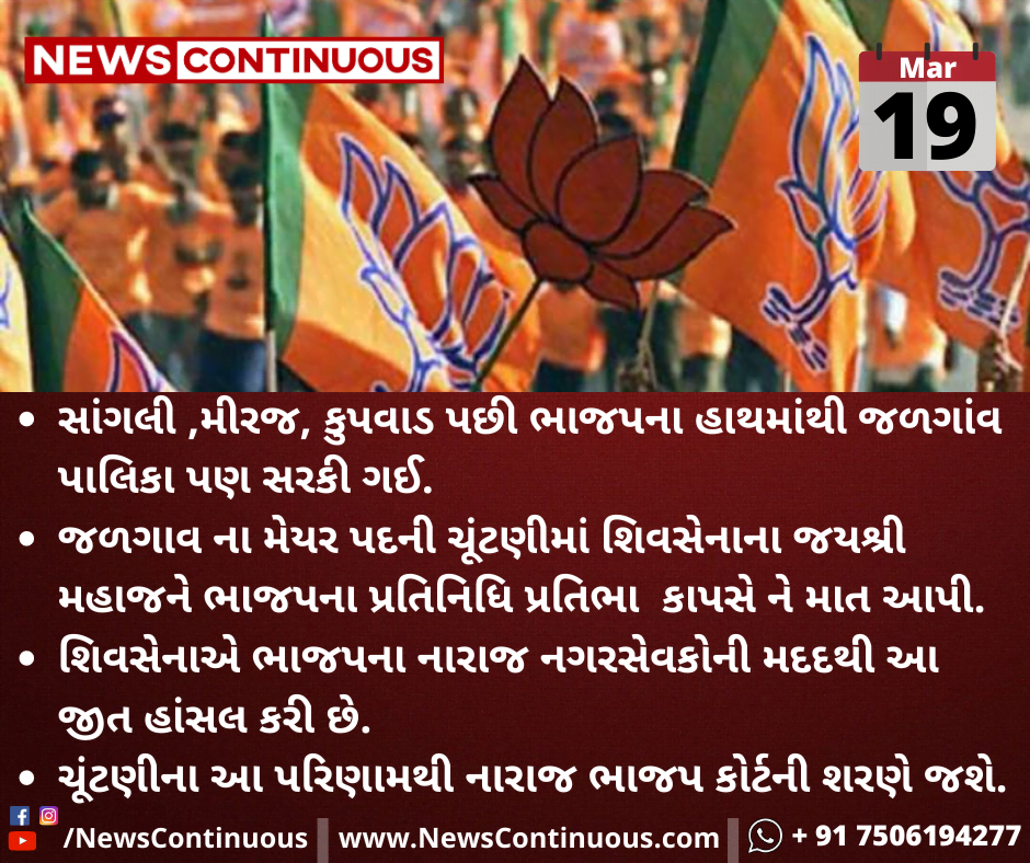 સાંગલી ,મીરજ, કુપવાડ પછી ભાજપના હાથમાંથી જળગાંવ પાલિકા પણ સરકી ગઈ.