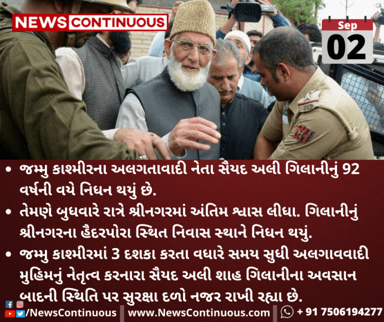 જમ્મુ કાશ્મીરના અલગતાવાદી નેતા સૈયદ અલી ગિલાનીનું 92 વર્ષની વયે નિધન થયું છે.