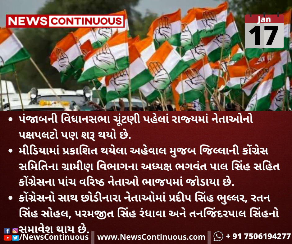 પંજાબની વિધાનસભા ચૂંટણી પહેલાં રાજ્યમાં નેતાઓનો પક્ષપલટો પણ શરૂ થયો છે.