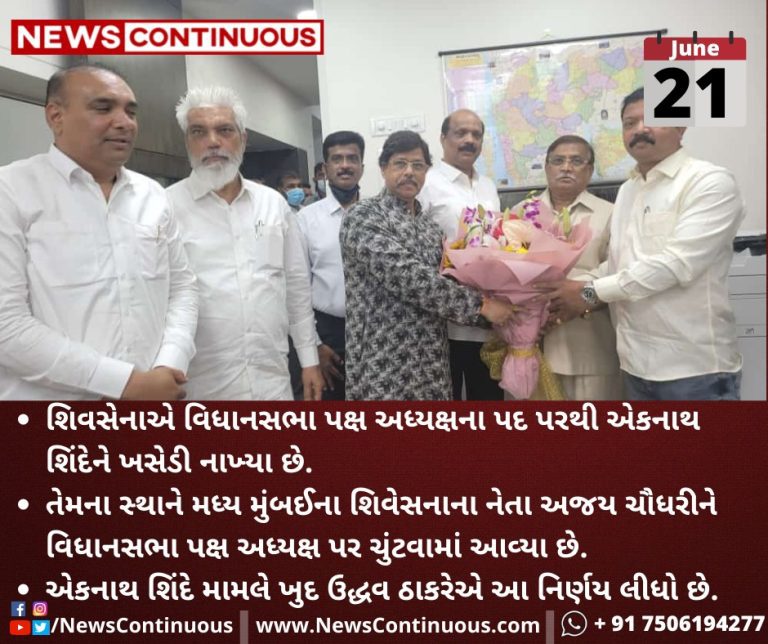 તેમના સ્થાને મધ્ય મુંબઈના શિવેસનાના નેતા અજય ચૌધરી(Ajay Choudhary)ને વિધાનસભા પક્ષ અધ્યક્ષ(Legislative Party leader) પર ચુંટવામાં આવ્યા છે.