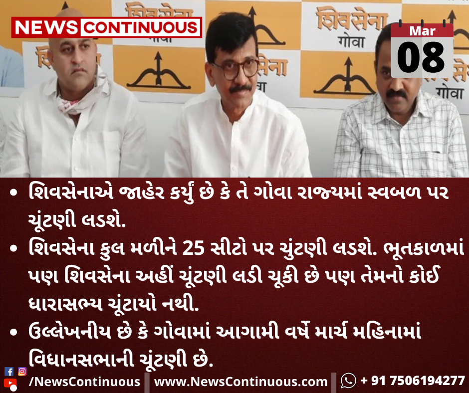 શિવસેનાએ જાહેર કર્યું છે કે તે ગોવા રાજ્યમાં સ્વબળ પર ચૂંટણી લડશે.