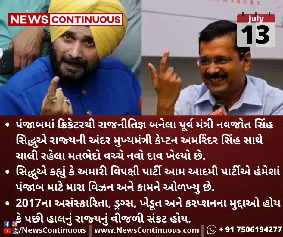 પંજાબમાં ક્રિકેટરથી રાજનીતિજ્ઞ બનેલા પૂર્વ મંત્રી નવજોત સિંહ સિદ્ધુએ રાજ્યની અંદર મુખ્યમંત્રી કેપ્ટન અમરિંદર સિંહ સાથે ચાલી રહેલા મતભેદો વચ્ચે નવો દાવ ખેલ્યો છે.