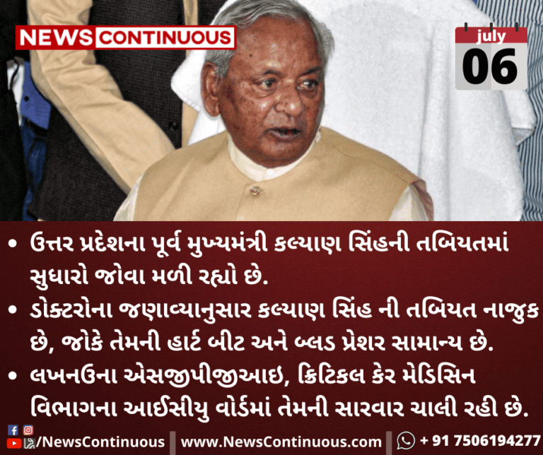 ઉત્તર પ્રદેશના પૂર્વ મુખ્યમંત્રી કલ્યાણ સિંહની તબિયતમાં સુધારો જોવા મળી રહ્યો છે.