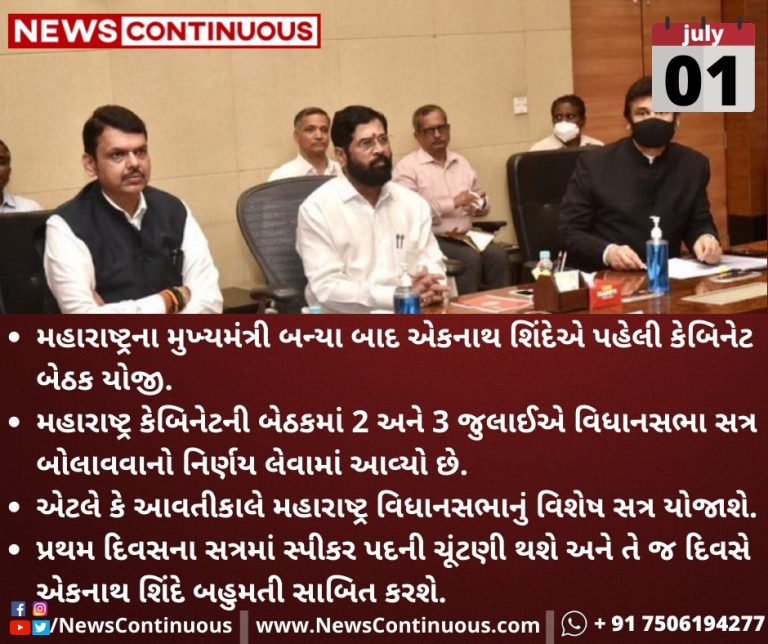 મહારાષ્ટ્રના મુખ્યમંત્રી(Maharashtra CM) બન્યા બાદ એકનાથ શિંદેએ(Eknath Shinde) પહેલી કેબિનેટ બેઠક(Cabinet meeting) યોજી.