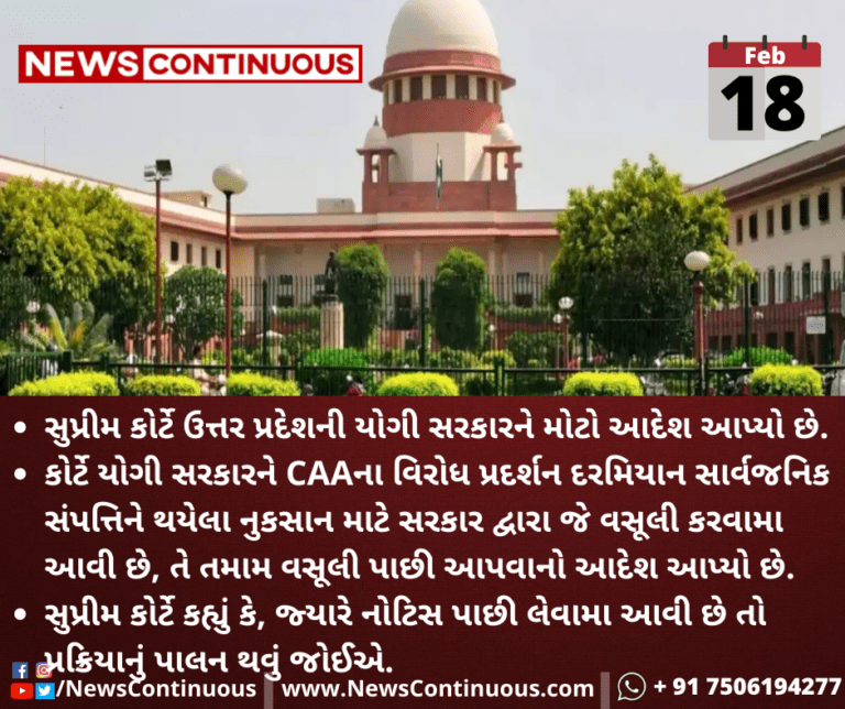 કોર્ટે યોગી સરકારને CAAના વિરોધ પ્રદર્શન દરમિયાન સાર્વજનિક સંપત્તિને થયેલા નુકસાન માટે સરકાર દ્વારા જે વસૂલી કરવામા આવી છે, તે તમામ વસૂલી પાછી આપવાનો આદેશ આપ્યો છે.