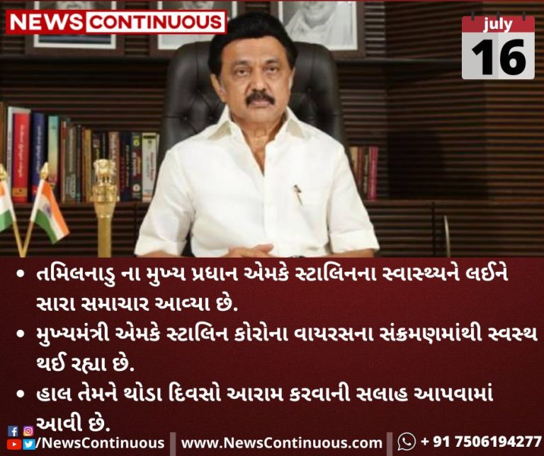 તમિલનાડુ ના(Tamil Nadu) મુખ્ય પ્રધાન(Chief Minister) એમકે સ્ટાલિનના(MK Stalin) સ્વાસ્થ્યને(Health update) લઈને સારા સમાચાર આવ્યા છે.