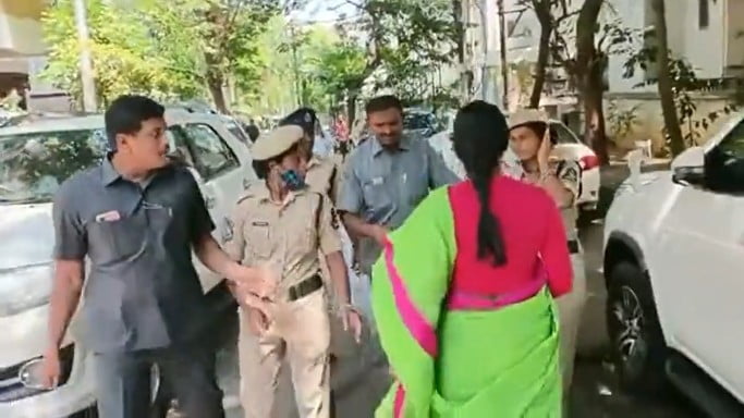 તેલંગાણામાં સોમવારે રસ્તા પર ભારે ડ્રામા જોવા મળ્યો. અહીં YSRTP ચીફ વાયએસ શર્મિલાએ પોલીસકર્મીઓને થપ્પડ મારી હતી. ઘણી વખત મહિલાઓ પોલીસને ધક્કો મારીને ધરણા પર બેસી ગઈ હતી. રસ્તા પર કલાકો સુધી ડ્રામા ચાલતો રહ્યો. આખરે પોલીસ દ્વારા તેને કસ્ટડીમાં લેવામાં આવ્યા હતા અને સ્થાનિક પોલીસ સ્ટેશનમાં લાવવામાં આવ્યા હતા. TSPSC પ્રશ્ન પેપર લીક કેસમાં શર્મિલા SIT ઓફિસ જઈ રહી હતી. દરમિયાન પોલીસ તેમને રોકવા પહોંચી હતી. તમામ પ્રયત્નો પછી પણ તે રોકાયા નહીં, પછી તેની કારની સામે ભારે પોલીસ દળ ઉભો હતો. ત્યાર બાદ રાજકીય ડ્રામા શરૂ થયો હતો.
