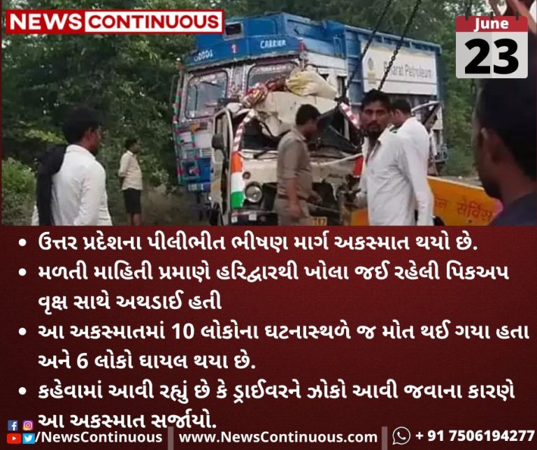 ઉત્તર પ્રદેશના(Uttar Pradesh) પીલીભીત(Pilibhit ) ભીષણ માર્ગ અકસ્માત(Accident) થયો છે.