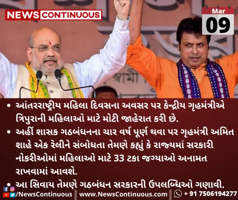 આંતરરાષ્ટ્રીય મહિલા દિવસના અવસર પર કેન્દ્રીય ગૃહમંત્રીએ ત્રિપુરાની મહિલાઓ માટે મોટી જાહેરાત કરી છે.