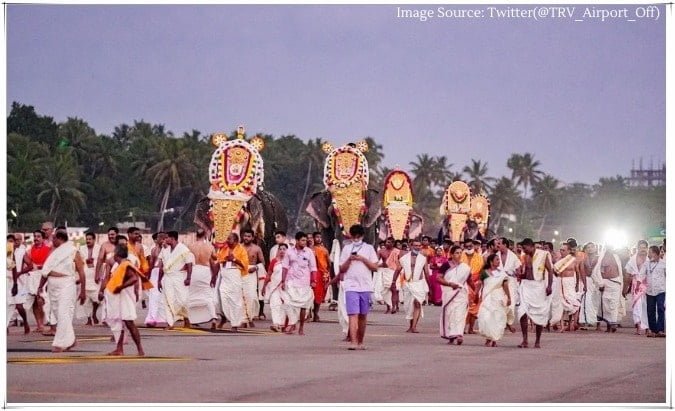 We at #ThiruvananthapuramAirport feel immensely honoured, as we continue to uphold the centuries-old tradition of the auspicious #Arattu procession of Sri Padmanabha Swamy temple through our runway.#IndiasCelebrationStarter #GatewayToGoodness #Festival #Celebration #Travel pic.twitter.com/TUsFGOly1E