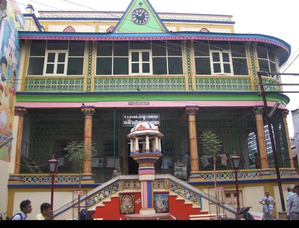 આ મકાનનું નિર્માણ ગત ૨૫-૦૪-૧૮૯૮ એ શ્રી મન:સુખરામ સૂર્યરામ ત્રિપાઠીએ કરેલું. તેઓ આ સાક્ષરભૂમિના એક પ્રકાંડ પંડિત, વિચક્ષણ રાજપુરુષ અને ગોવર્ધનરામ ત્રિપાઠી જેવા સાક્ષરરત્નો ના માર્ગદર્શક વડીલ હતા. તેમણે પત્ની ડાહીલક્ષ્મીની યાદમાં આ પુસ્તકાલયની સ્થાપના કરી હતી.