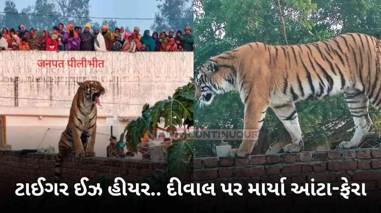 Tiger On Wall : ઉત્તર પ્રદેશના ( Uttar Pradesh ) પીલીભીતમાં ( Pilibhit ) મોડી રાત્રે એક વાઘ જંગલમાંથી બહાર આવ્યો અને રહેણાંક વિસ્તારમાં ( residential area ) ઘુસી આવ્યો. જ્યારે લોકોએ તેની સામે જોયું તો તેઓ ચોંકી ગયા. હાલ વાઘનો વીડિયો સોશિયલ મીડિયા પર વાયરલ ( Viral video ) થઈ રહ્યો છે. જેમાં તે દિવાલ પર આરામ કરતો જોવા મળે છે. આસપાસ ગામલોકોનું ટોળું એકઠું થયું. જો કે, દિવાલની ફરતે ફેન્સીંગ કરી દેવામાં આવી હતી. જેથી વાઘ કોઈના પર હુમલો ન કરે.
