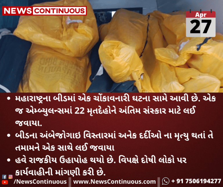 મહારાષ્ટ્રના બીડમાં એક ચોંકાવનારી ઘટના સામે આવી છે. એક જ એમ્બ્યુલન્સમાં 22 મૃતદેહોને અંતિમ સંસ્કાર માટે લઈ જવાયા.